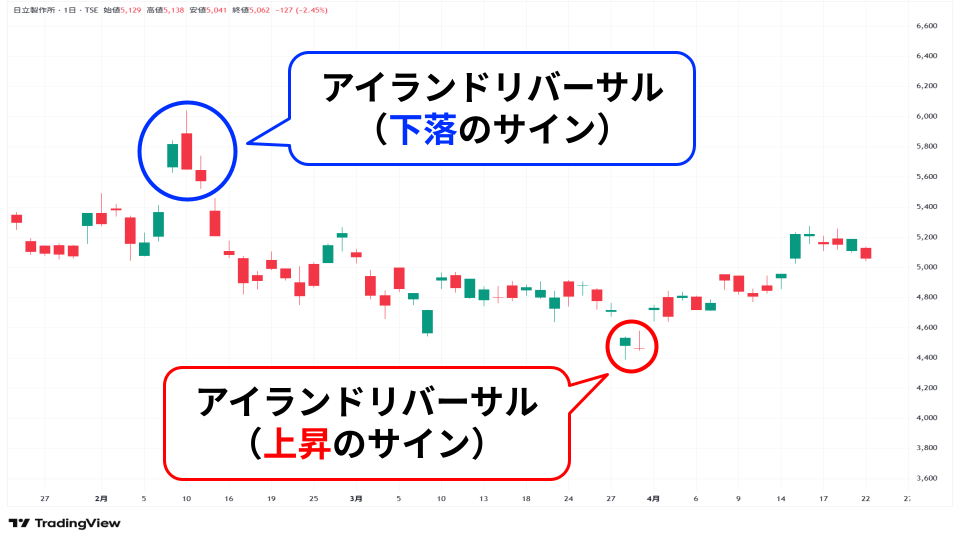 先ほどの日立製作所よりもハッキリとアイランドリバーサルでの反転が示された例となりました。