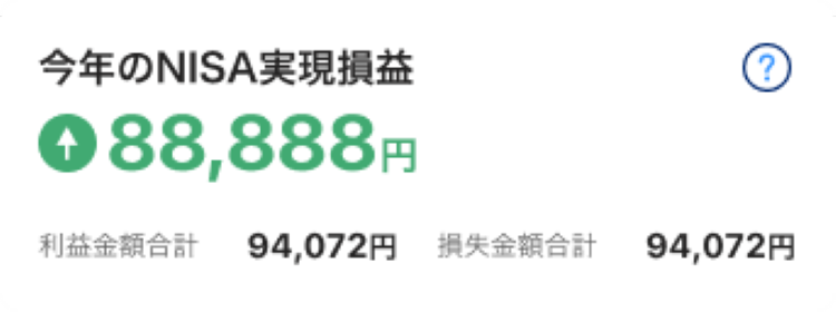 そのまま下にスクロールすると、「今年のNISA実現損益」が表示されます。